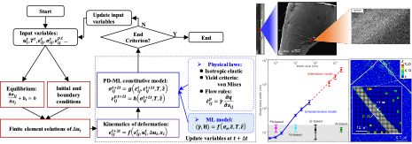 This research direction addresses the constitutive modeling of solid materials under complex and extreme service conditions, with a focus on extending and intelligently formulating constitutive theories within the framework of continuum mechanics. The research spans a wide range of time scales, from ultra-slow creep to high strain-rate impact, involving representative material systems such as polymers, engineering alloys, and protective structural materials; a broad temperature domain from cryogenic to elevated temperatures, with particular emphasis on key aerospace materials such as high-temperature alloys; as well as multi-physics coupling conditions relevant to energy materials. Through microscale simulations and multi-dimensional experimental characterization, generalized constitutive descriptions are developed to consistently capture nonlinear, time-dependent, and path-dependent material behaviors. Building upon these foundations, artificial intelligence and statistical inference techniques are introduced to integrate heterogeneous data sources into a unified modeling framework. The ultimate goal is to establish physics-informed, data-driven constitutive modeling approaches that enable reliable prediction and efficient deployment of material behavior models in complex engineering simulations.
